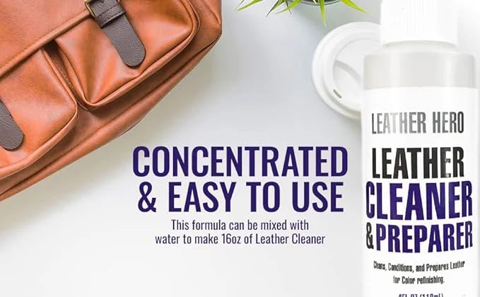 Leather Hero Cleaner & Restorer - 4oz (Makes 16oz) - Safe for All Smooth Leather - Made in USA