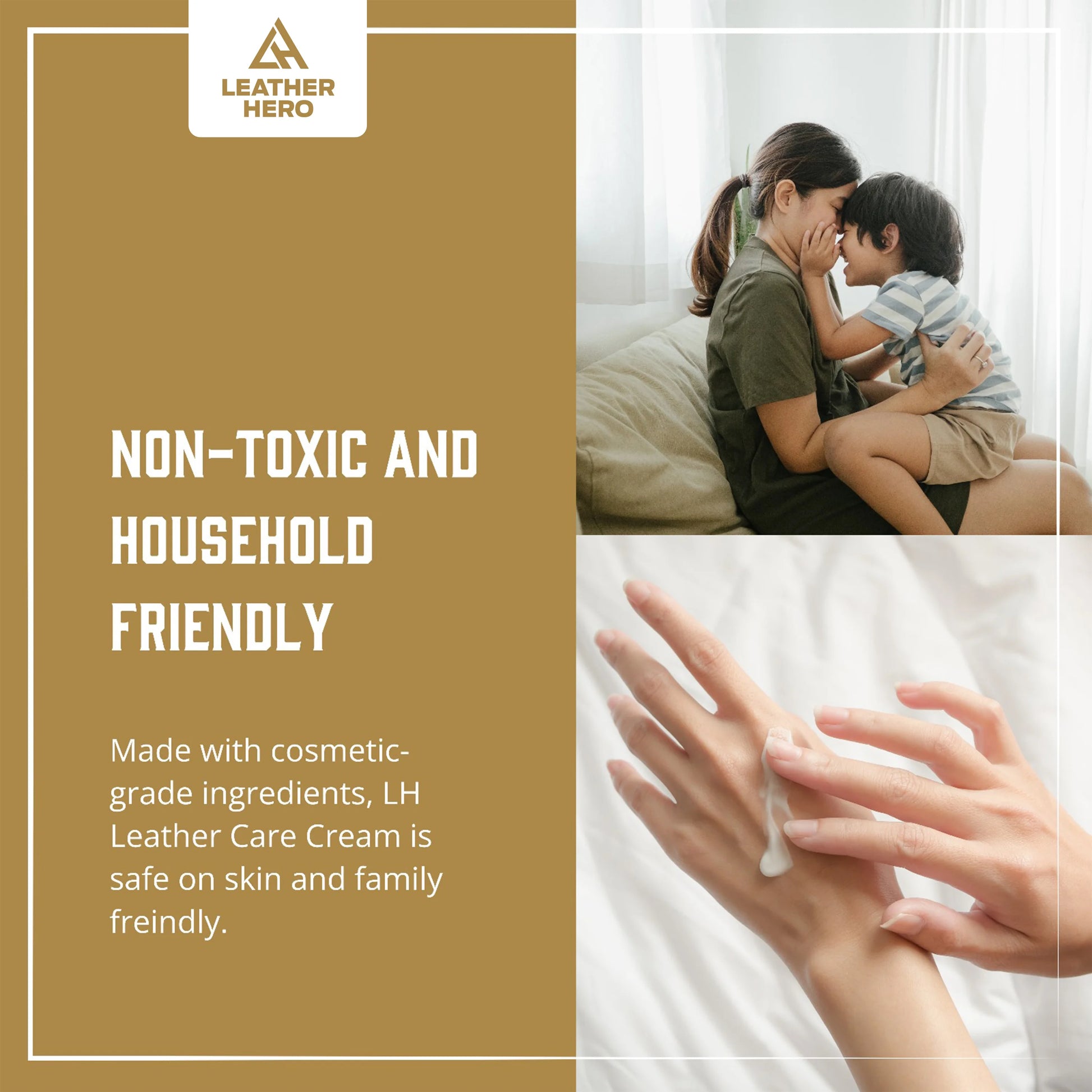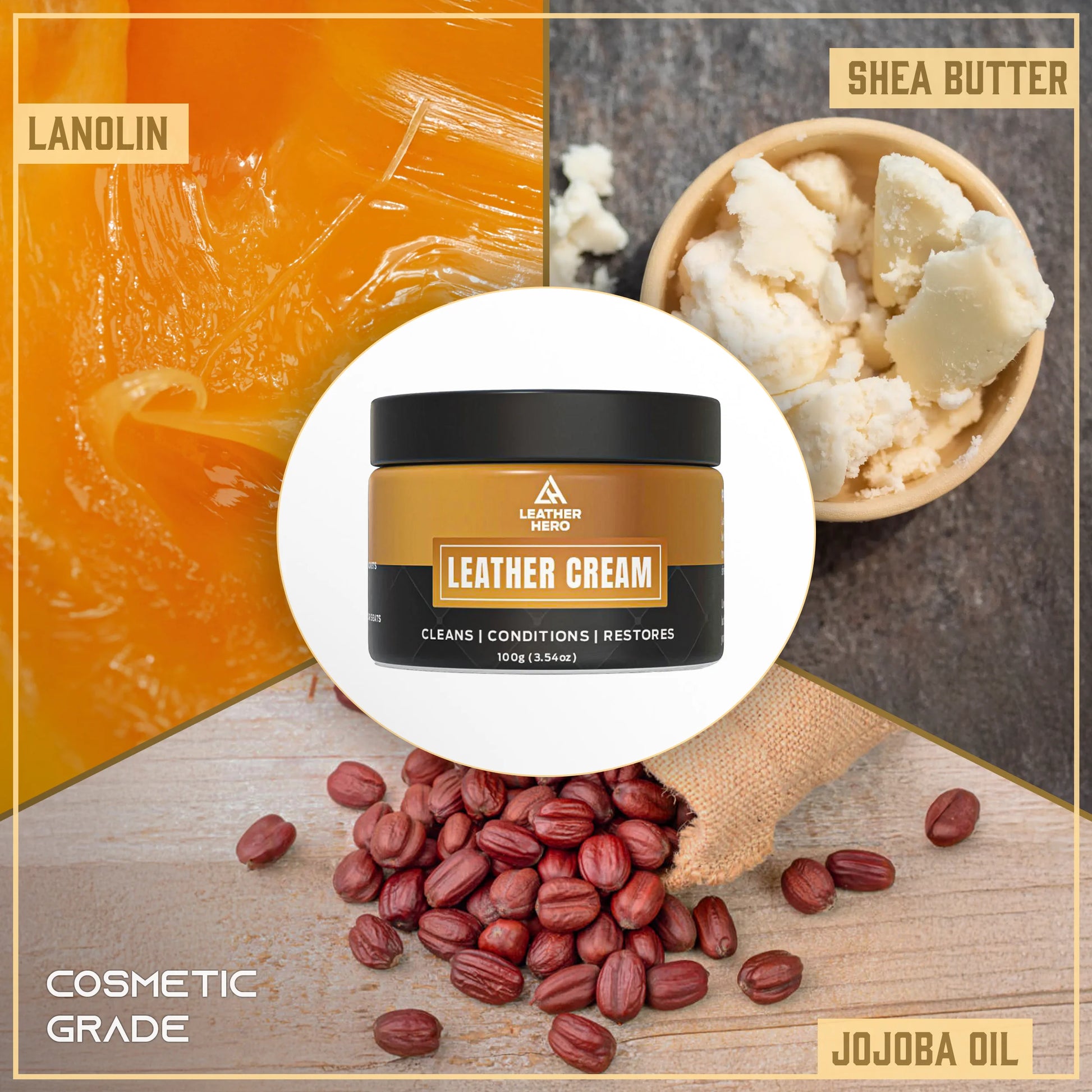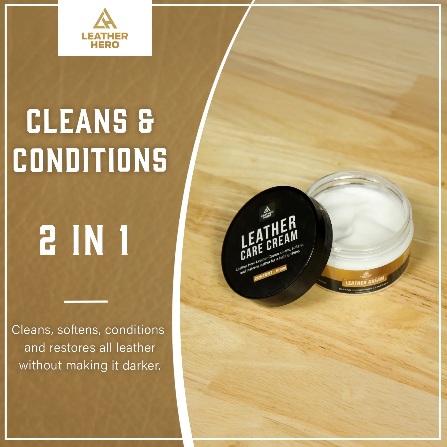 ALL-IN-ONE LEATHER CARE - Leather Hero leather care cream cleans, softens, conditions, and restores all leather types, providing complete care and protection. It will not darken your leather goods.